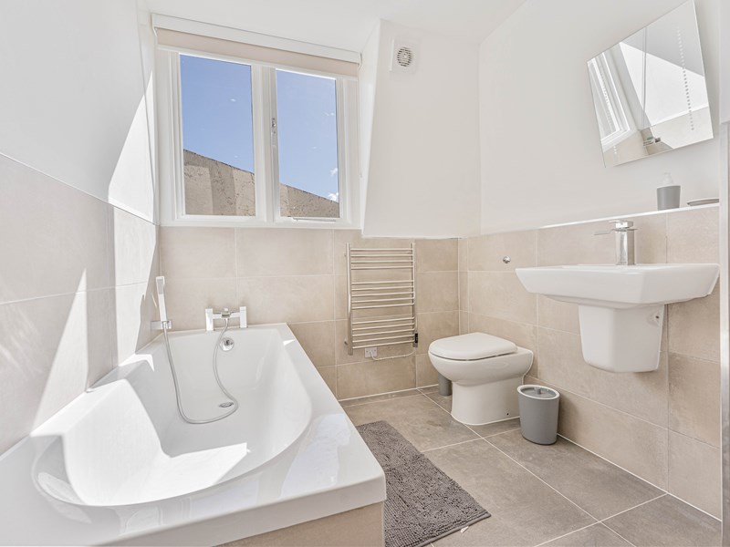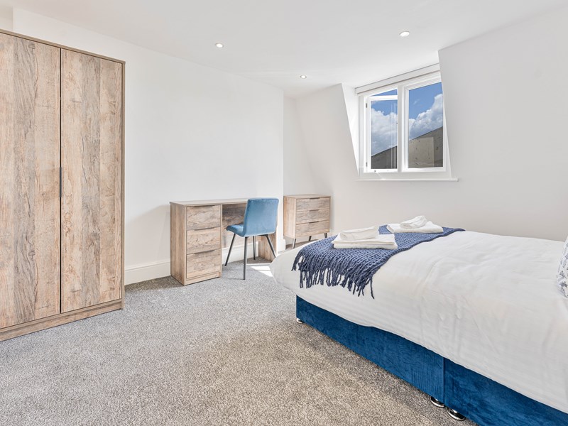Enjoy a peaceful night’s sleep in the cosy double bedroom, complete with soft linens and plenty of storage.