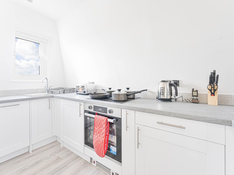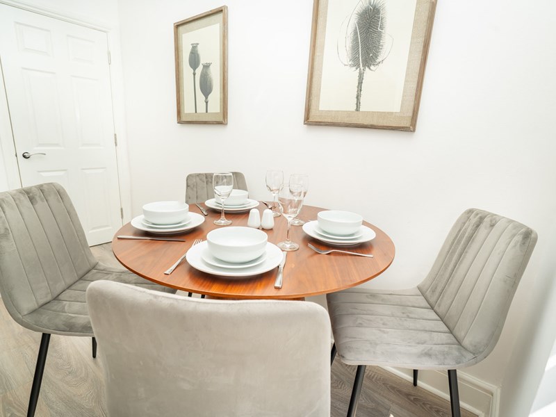 Cook your favourite meals with ease in the well-stocked kitchen, and enjoy them at the dining table for a relaxed, homely experience.