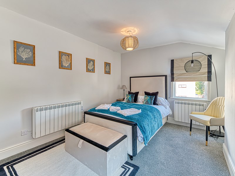 Unwind in a well-appointed bedroom with a comfortable bed, quality linens, and ample storage — everything you need for a peaceful night’s sleep.