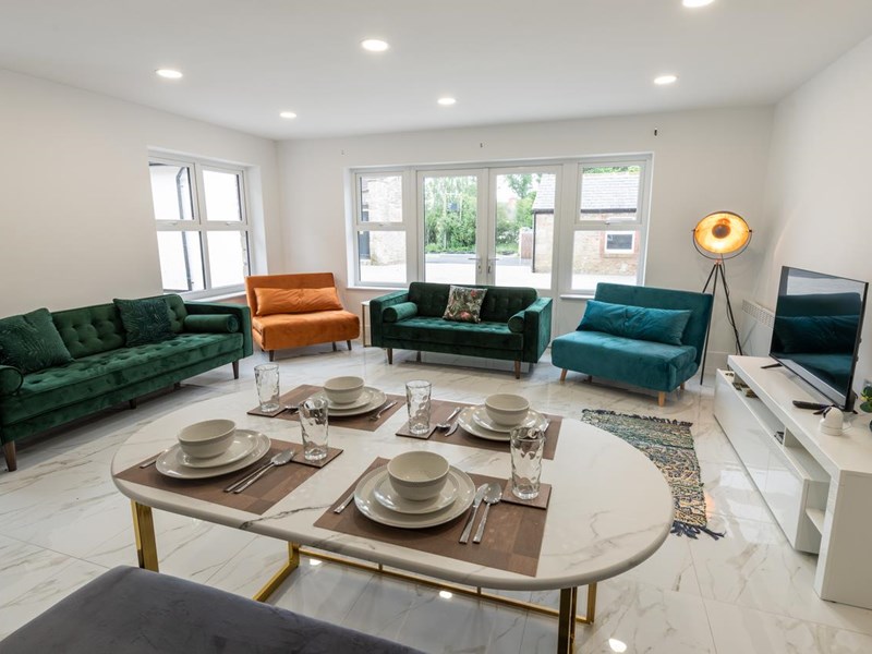 - Open-plan living & dining space with Smart TV & free WiFi