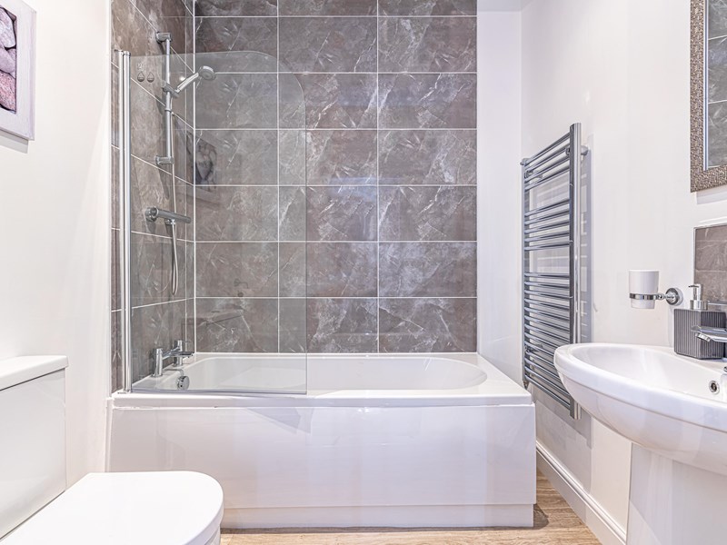 A modern bathroom with shower-over-bath—soak or splash, your choice!