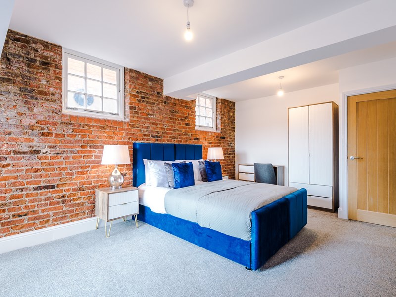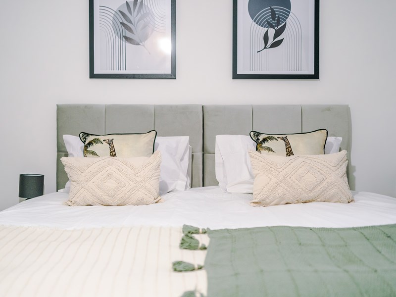Enjoy a restful night in a beautifully furnished bedroom featuring cosy bedding and calming decor.