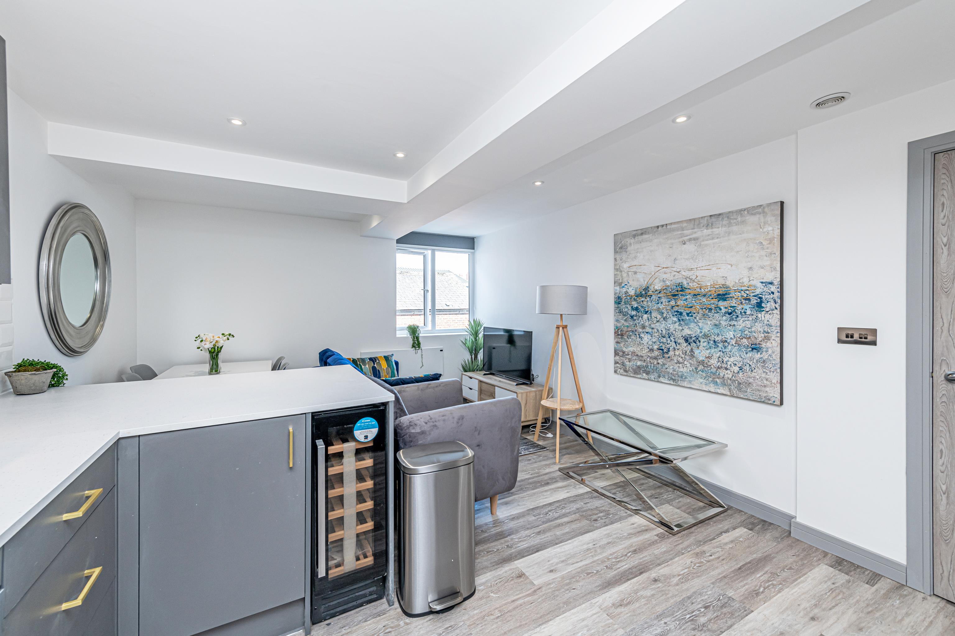 The open-plan living, dining, and kitchen area is both stylish and functional, seamlessly blending comfort with a fully equipped modern kitchen—perfect for self-catering or entertaining.