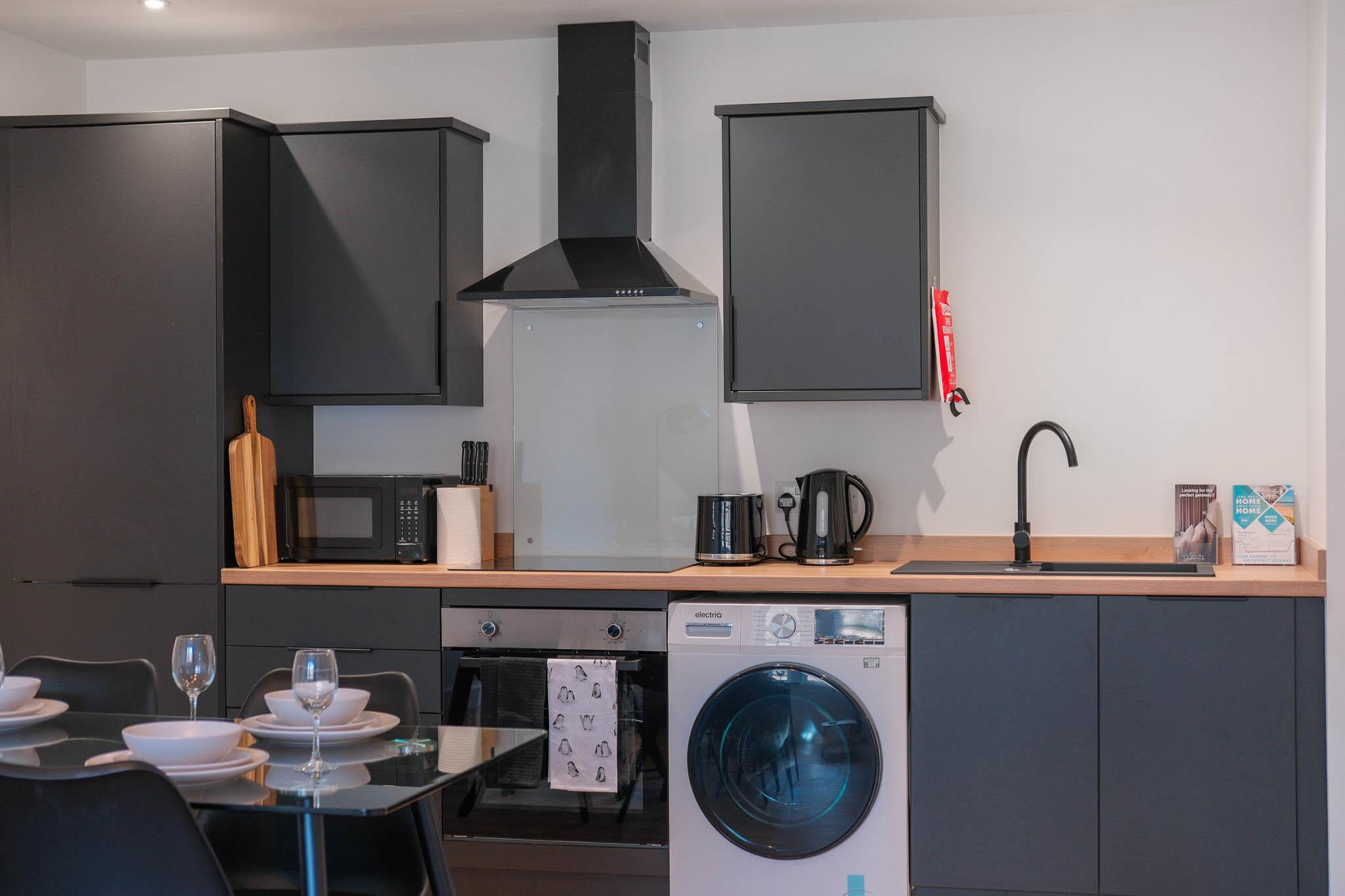 Enjoy a welcoming open-plan space with a fully equipped kitchen, dining area, and cosy lounge—ideal for cooking meals, working remotely, or relaxing with family or friends.