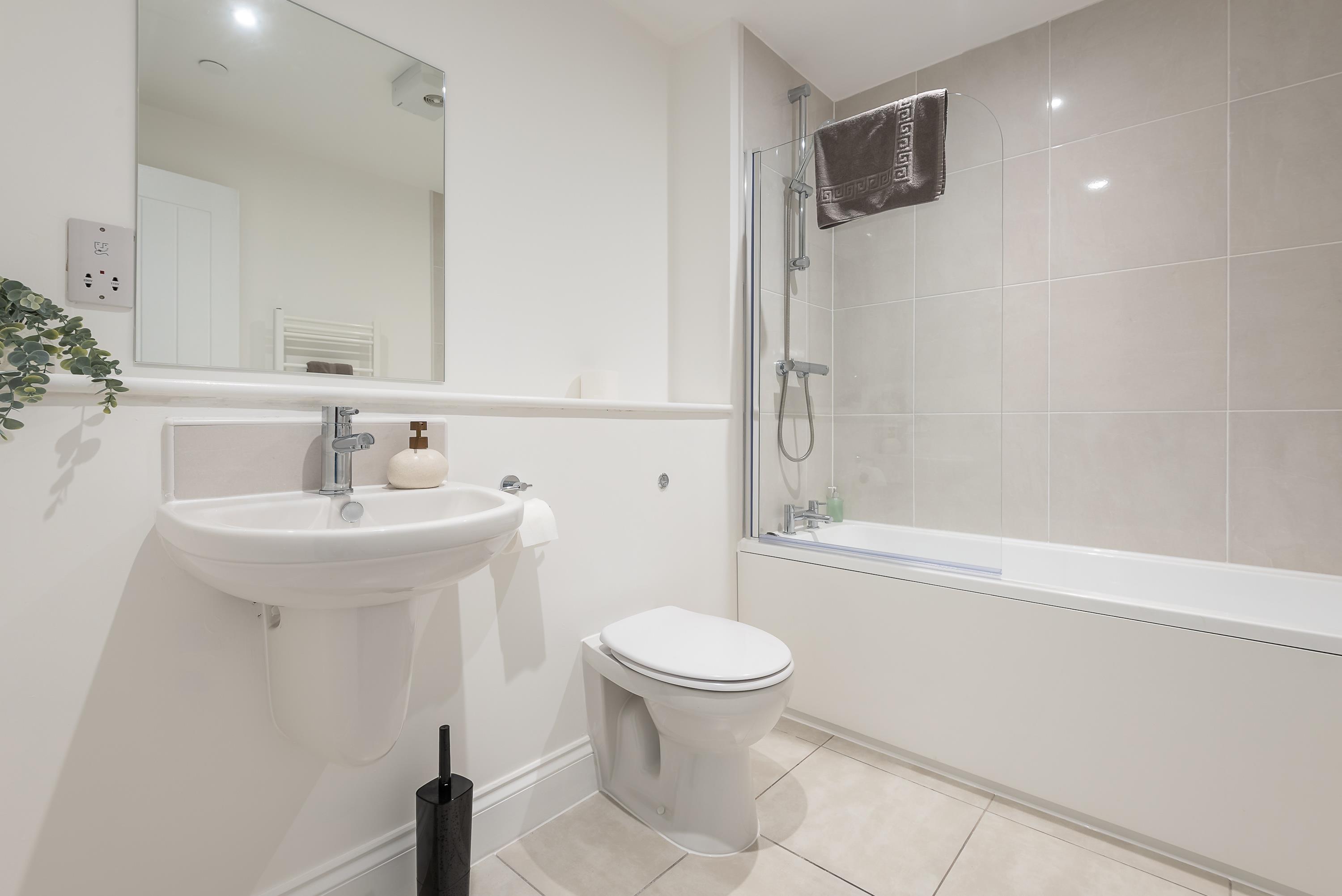 Start your day with a refreshing shower in the modern bathroom, complete with fresh towels and complimentary toiletries.