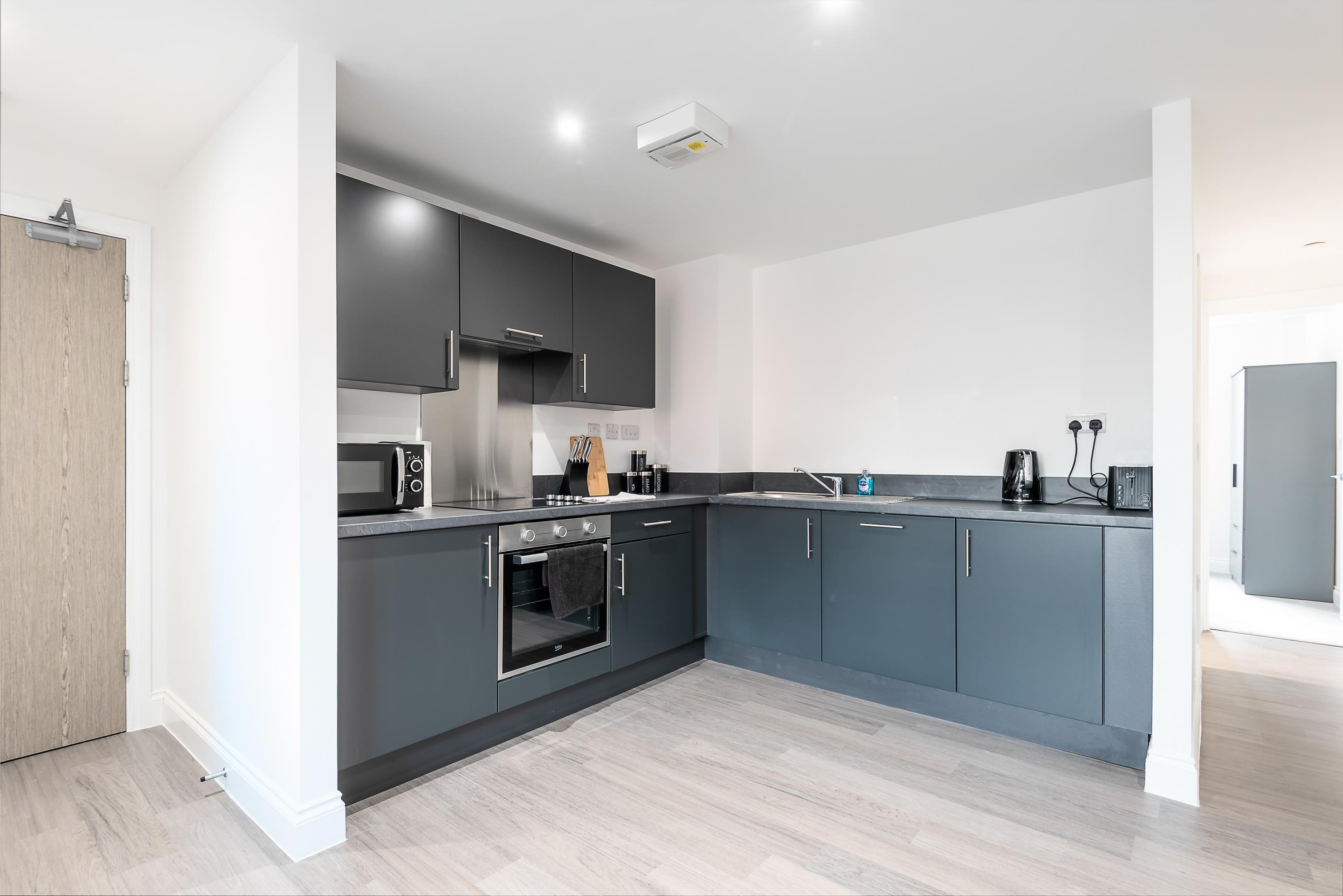 Cook with ease in the contemporary kitchen featuring all essentials for home-cooked meals.