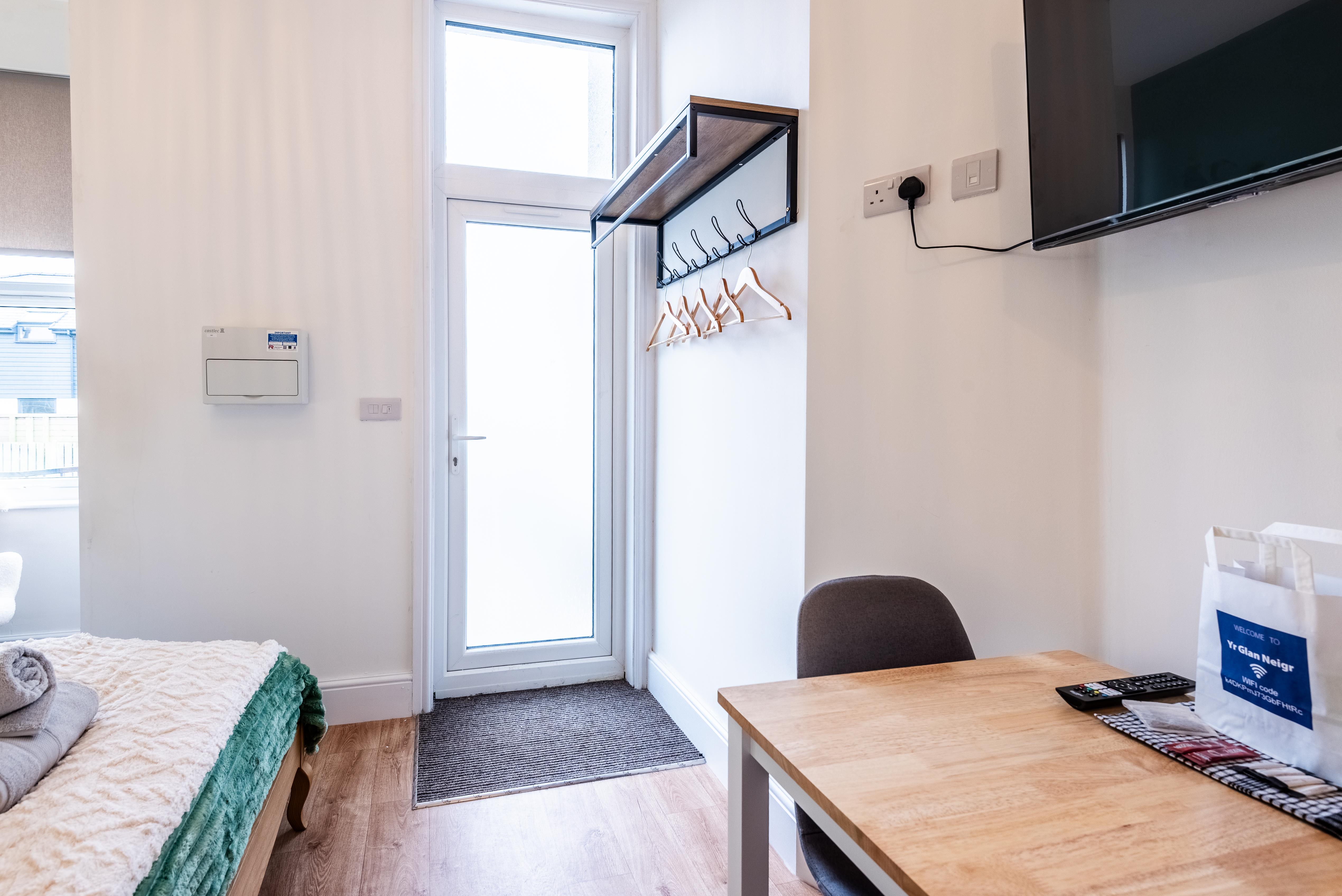 Enjoy a comfortable coastal stay in this bright and stylish studio apartment, set within a modern apart-hotel in the heart of Rhosneigr — ideal for couples or solo travellers.