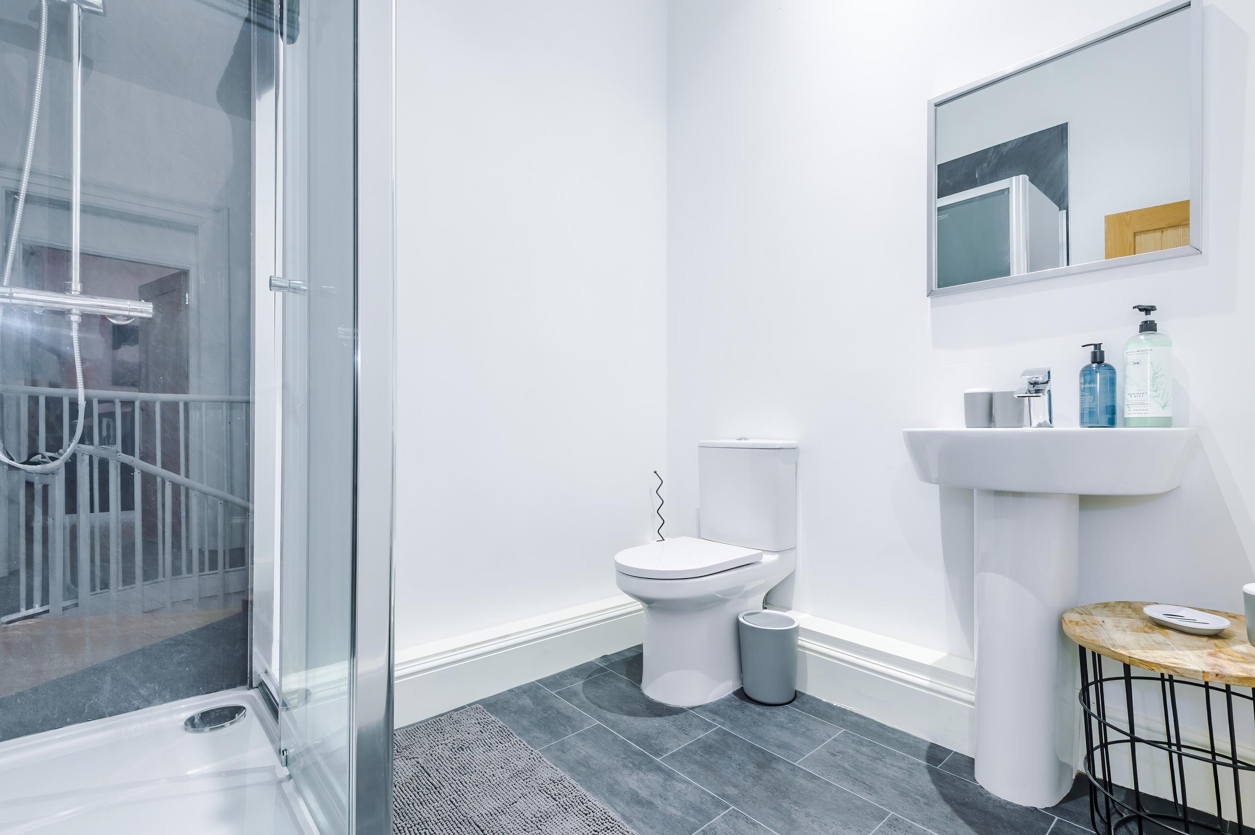 Enjoy a sleek, modern bathroom with high-end finishes – perfect for unwinding after a day exploring the city.