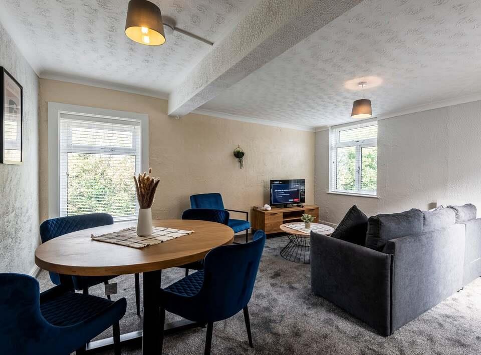 Spacious living area with Smart TV & Wi-Fi