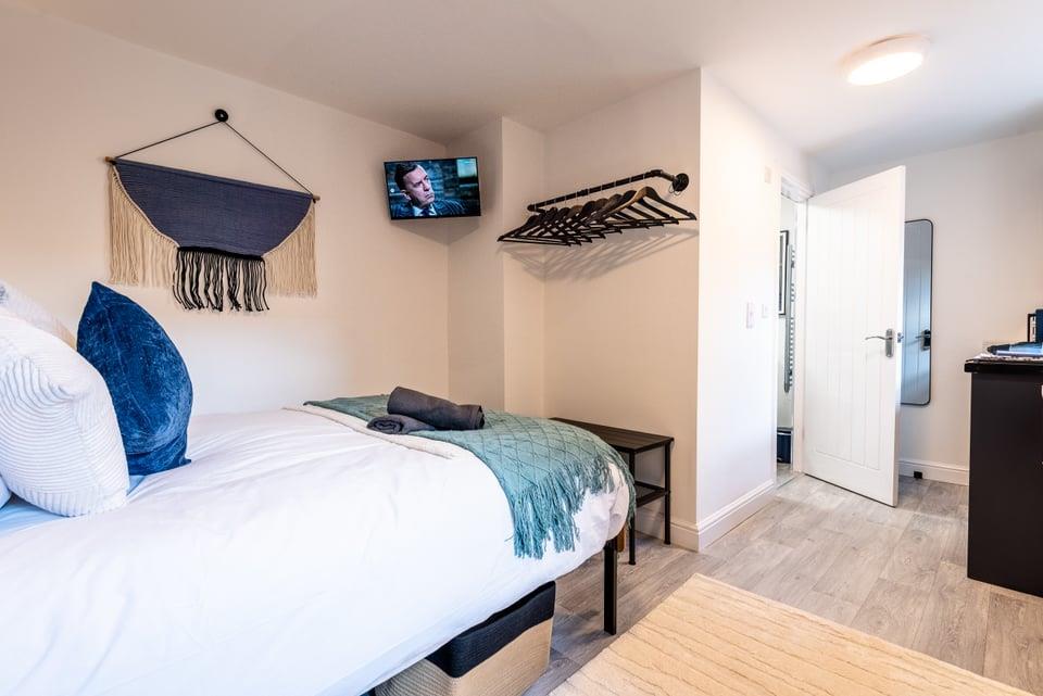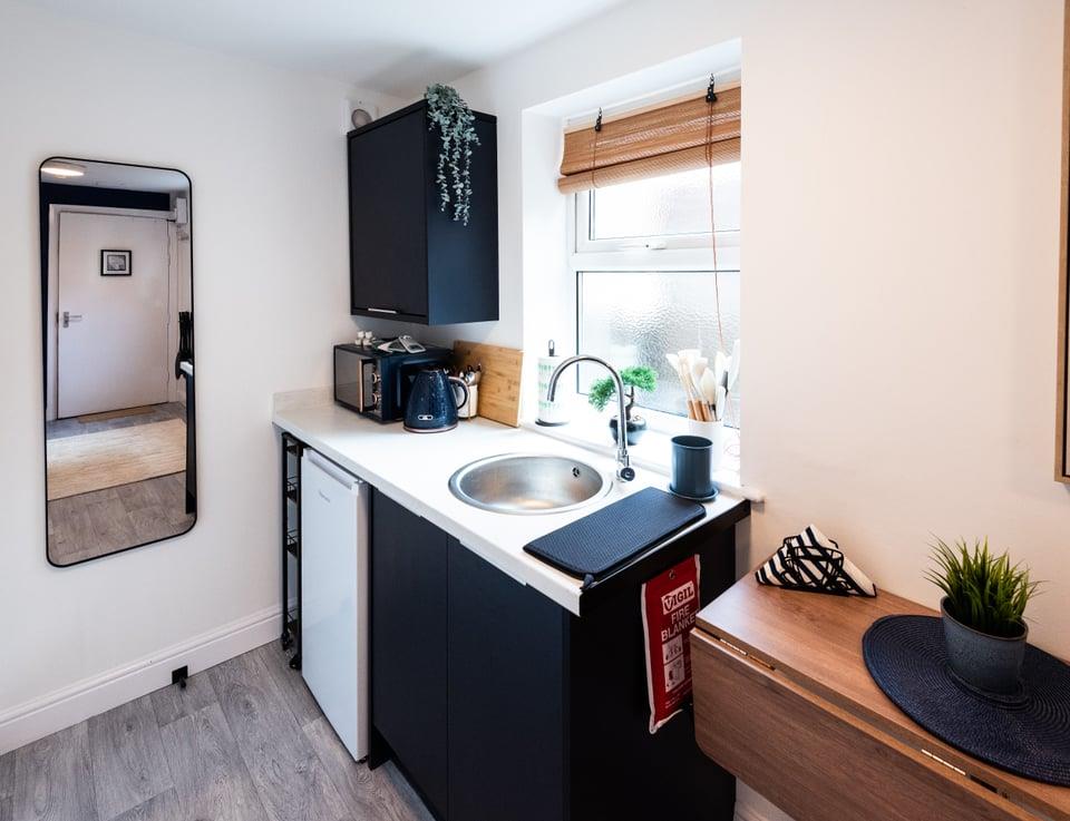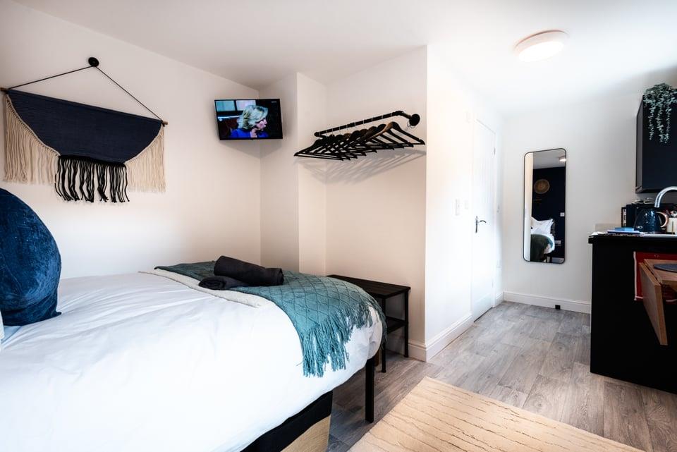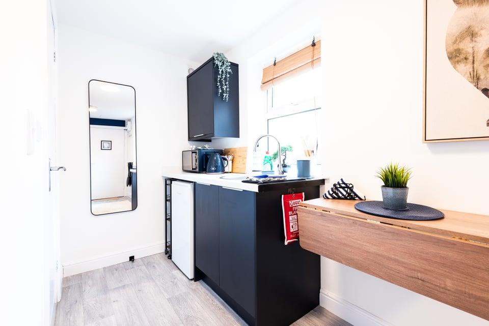 The space is thoughtfully designed with modern furnishings, creating a relaxing and practical environment for your stay. Guests also benefit from a private en-suite bathroom and a basic kitchen worktop equipped with a toaster and air fryer, making it easy to prepare light meals or snacks.